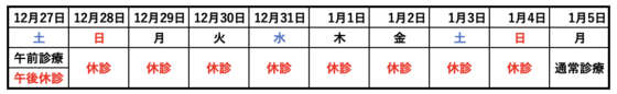 12月28日(日) ~ 1月4日(日)まで休診とさせていただきます。